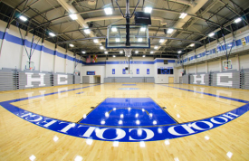 The Woodsboro Bank Arena is home to Hood's volleyball and women's and men's basketball teams. Admission to athletic contests in the Woodsboro Bank Arena is free for all fans. The arena is situated within the Hood Athletic Center, completed in November 2011, local firms Warner Construction and Zavos Architecture + Design. The facility is a 41,000-square-foot, state-of-the-art multipurpose structure, which includes the 1,600-seat Woodsboro Bank Arena (with space for 500 additional floor-level seats), an observation deck, a two-level fitness center and cardio room, an athletic training room, locker rooms, an athletic hall of fame recognition display, a concession area, a hospitality and meeting room and office spaces.