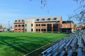 Completed in November 2011, local firms Warner Construction and Zavos Architecture + Design teamed up to construct the 41,000-square-foot, state-of-the-art multipurpose Volpe Athletic Center, which includes the 1,600-seat BB&T Arena (with space for 500 additional floor-level seats), an observation deck, a two-level fitness center and cardio room, an athletic training room, locker rooms, an athletic hall of fame recognition display, a concession area, a hospitality and meeting room and office spaces. Click here for photo galleries of athletic center construction.